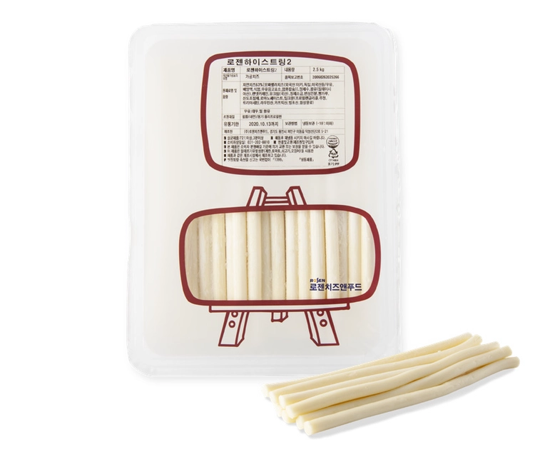 모짜렐라치즈의 스트레칭을 유지하면서 잔존율을 높인 스트링치즈로 피자크러스트, 치즈스틱 등 각종요리에 사용