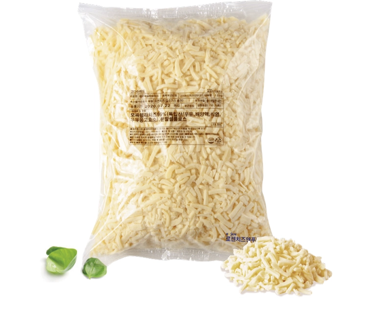 진한 맛이 특징인 고다치즈를 편리한 형태로 슈레딩한 자연치즈로 피자, 샐러드 등 각종요리에 사용