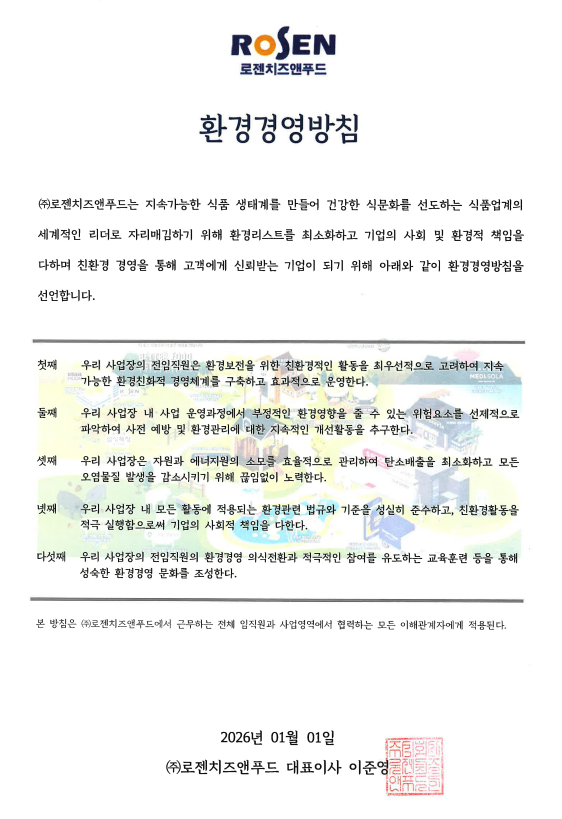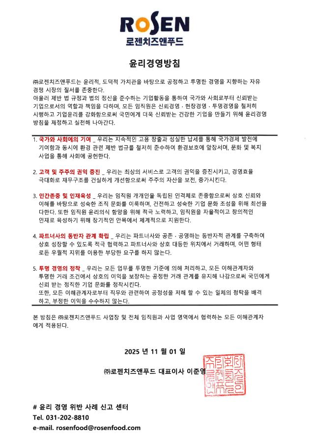 기능성 가공치즈 전문기업 로젠치즈앤푸드